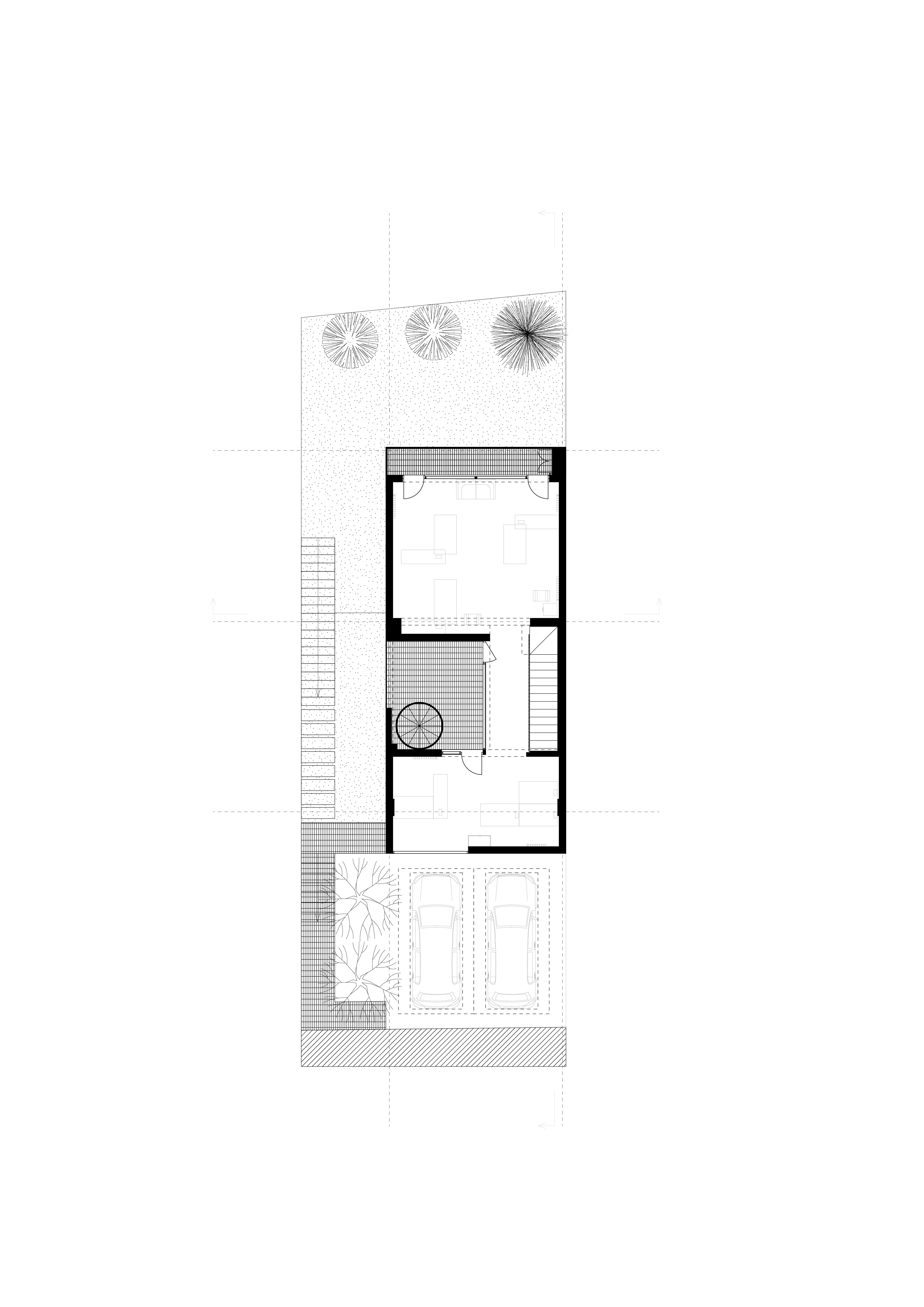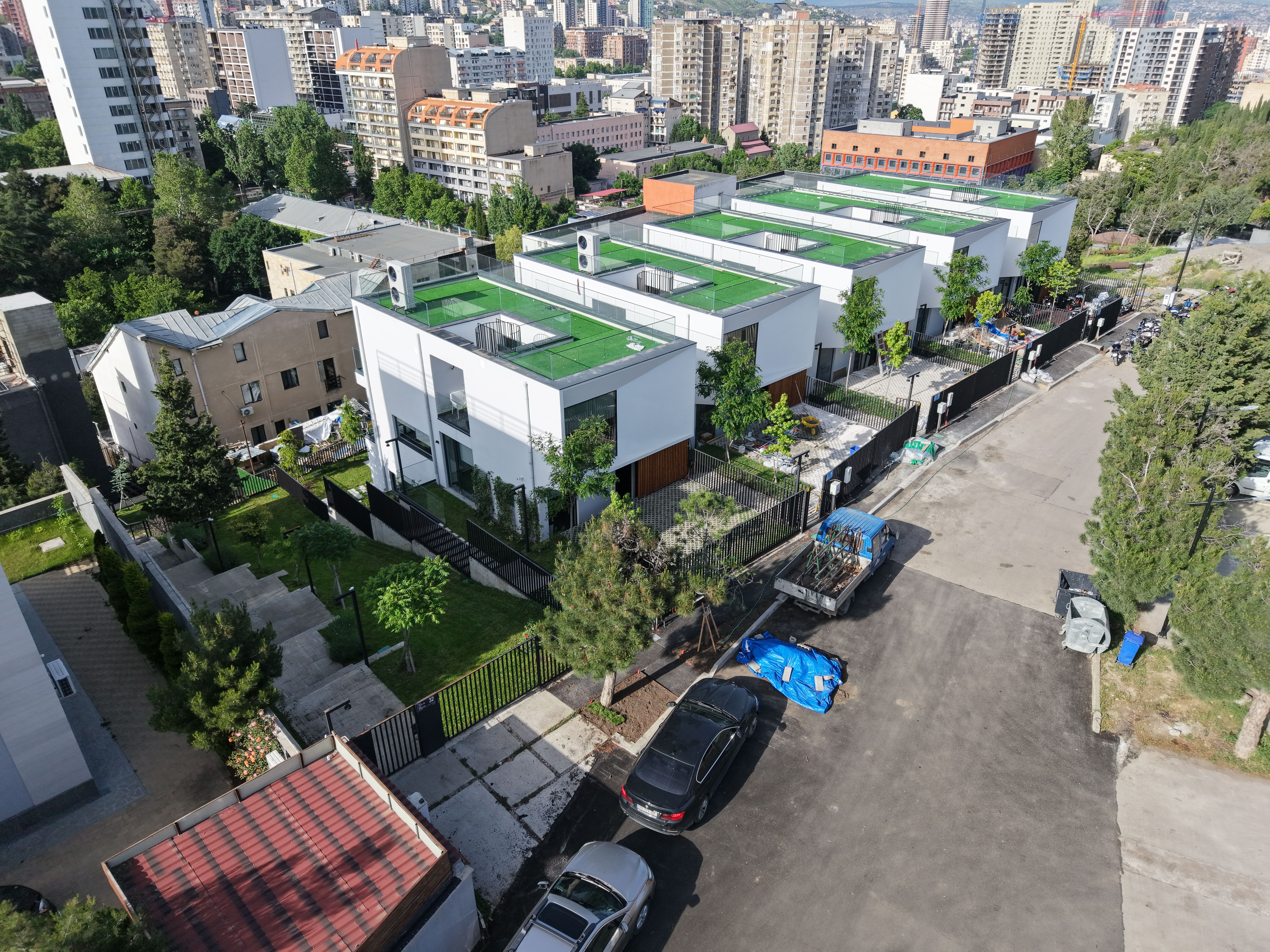 Kavtaradze Townhouses redefine modern urban living with a collection of individual units, designed as versatile multifunctional spaces. Nestled into the natural slope of the site, each townhouse unfolds across three levels, with a welcoming street-level entrance that seamlessly connects to both upper and lower floors through a central staircase.Every unit is thoughtfully planned to include private parking directly from the street, while the main city views open from the front façade, overlooking the dynamic cityscape of the Nutsubidze Plateau.