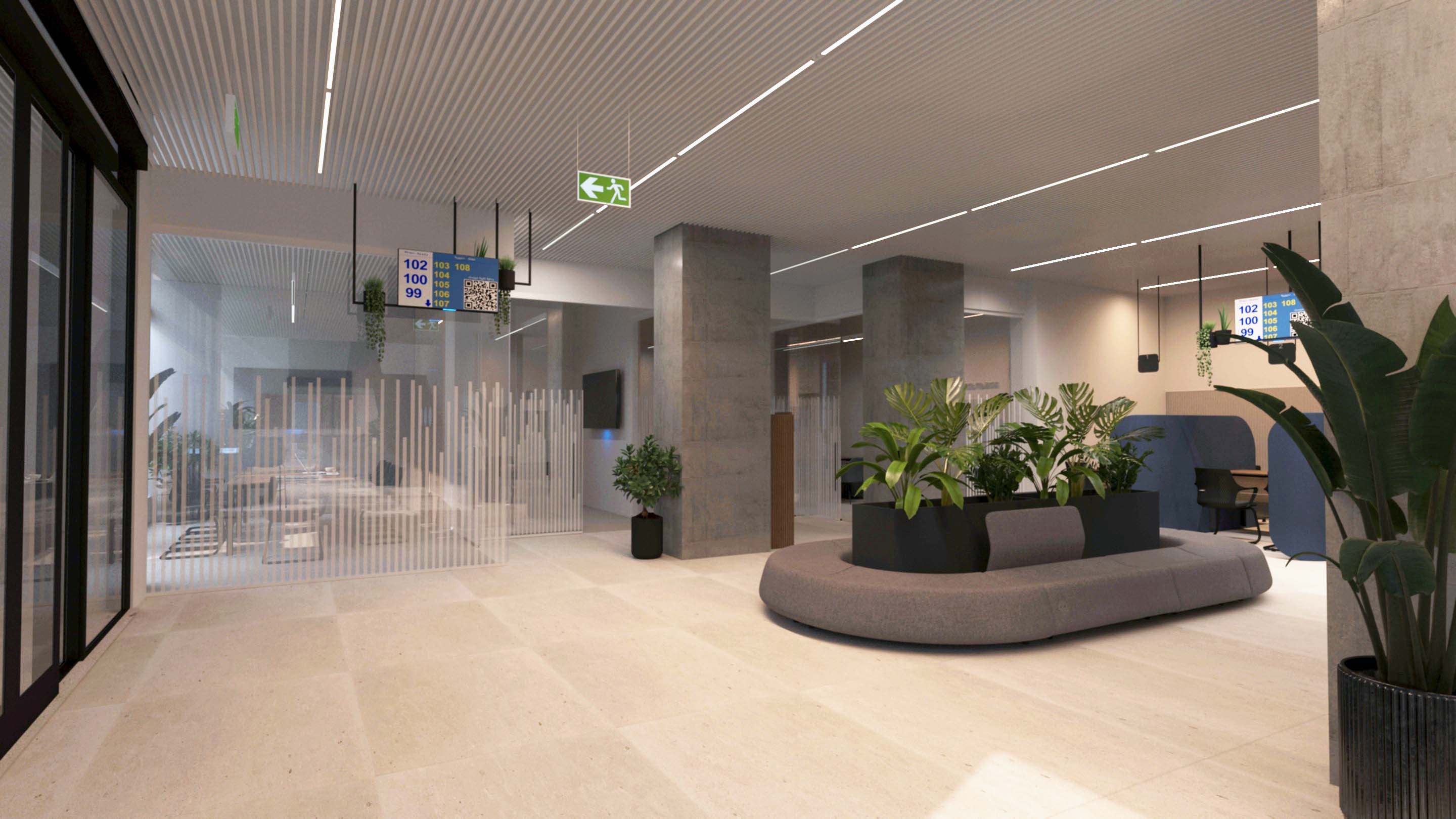 The project combines a modern interior with functionally planned spaces. Bright and open areas, enriched with greenery and natural tones, create a pleasant atmosphere for work and meetings. The layout includes flexible office zones, meeting rooms, and supporting facilities, making it adaptable to a wide range of business needs.